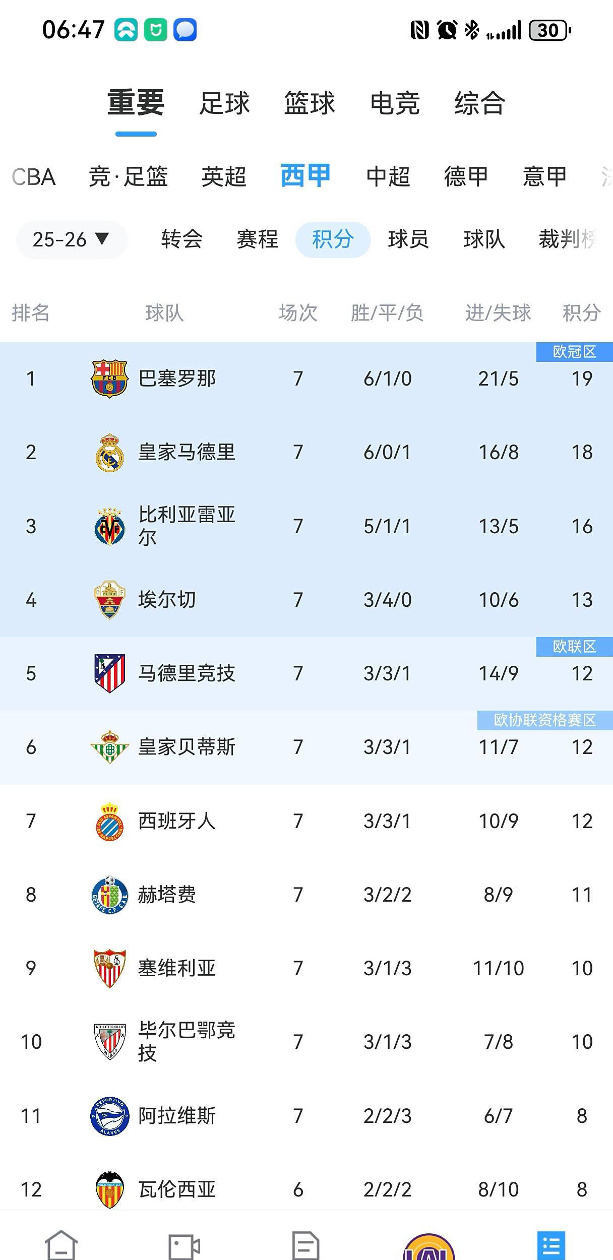 西甲直播,西甲赛程,西甲积分榜,皇马vs巴萨直播,西甲比分预测/为中文用户提供2025赛季西甲联赛全方位资讯:免费高清中文直播入口、赛程表、积分榜更新、皇马与巴萨动态追踪、竞彩推荐与比分预测。北京时间9月29日凌晨,西甲联赛第7轮多场焦点对决如火如荼展开。首先,埃尔切在安德烈席尔瓦和恩万科沃的进球帮助下,2-1力克塞尔塔;随后,巴萨在主场迎战皇家社会,奥德里奥索拉和莱万多夫斯基的进球带领球队成功完成逆转,最终以2-1胜出;而皇家贝蒂斯则凭借阿布德和库乔的入球,击败奥萨苏纳,比分为2-0。在西甲积分榜最新更新中,巴萨反超皇马暂时登顶,前三名之间仅相差3分。