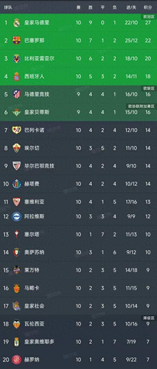 西甲直播,西甲赛程,西甲积分榜,皇马vs巴萨直播,西甲比分预测/为中文用户提供2025赛季西甲联赛全方位资讯:免费高清中文直播入口、赛程表、积分榜更新、皇马与巴萨动态追踪、竞彩推荐与比分预测。西甲第10轮的比赛已经结束了9场,剩下皇家贝蒂斯与马竞的对决尚未进行。让我们一起回顾一下本轮比赛的关键战况以及积分榜的变化。