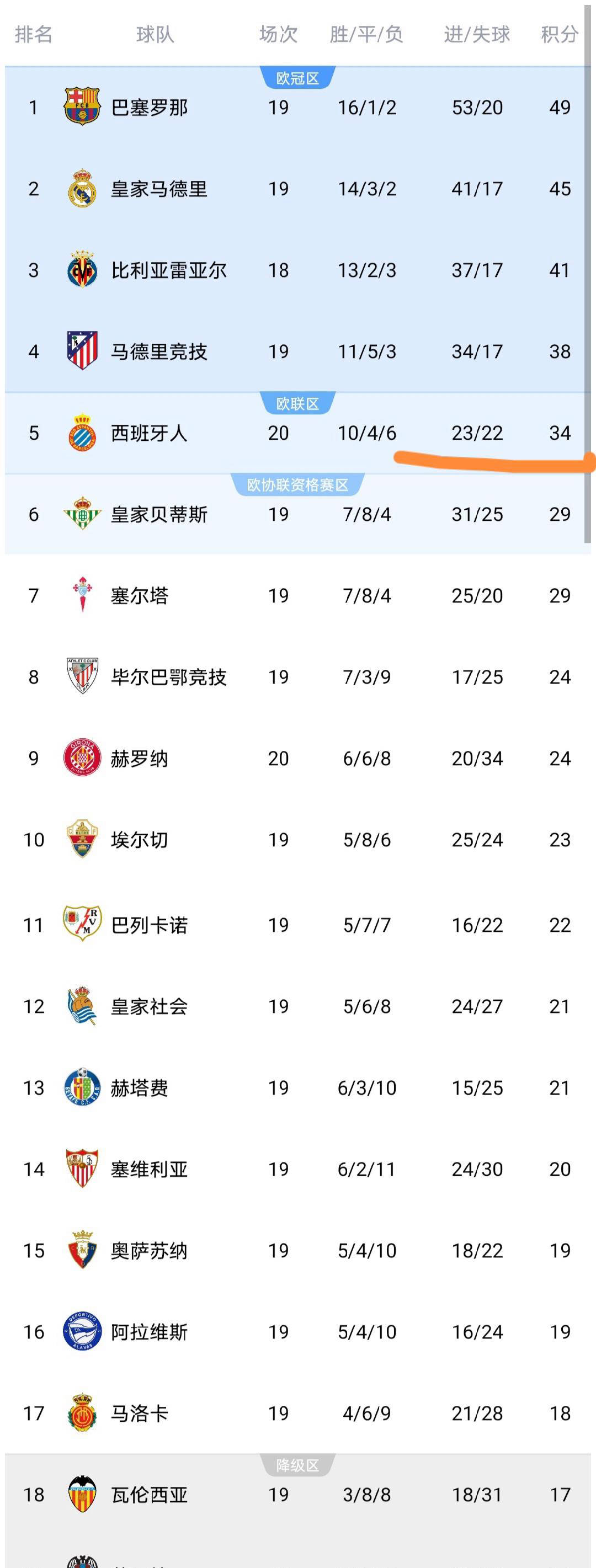 西甲直播,西甲赛程,西甲积分榜,皇马vs巴萨直播,西甲比分预测/为中文用户提供2025赛季西甲联赛全方位资讯:免费高清中文直播入口、赛程表、积分榜更新、皇马与巴萨动态追踪、竞彩推荐与比分预测。今天凌晨,西甲第20轮率先进行的一场焦点战中,西班牙人在主场迎战赫罗纳,意外以0-2告负。这场比赛的结果引发了积分榜的显著变动,让我们一起来详细解读当前的西甲积分格局。