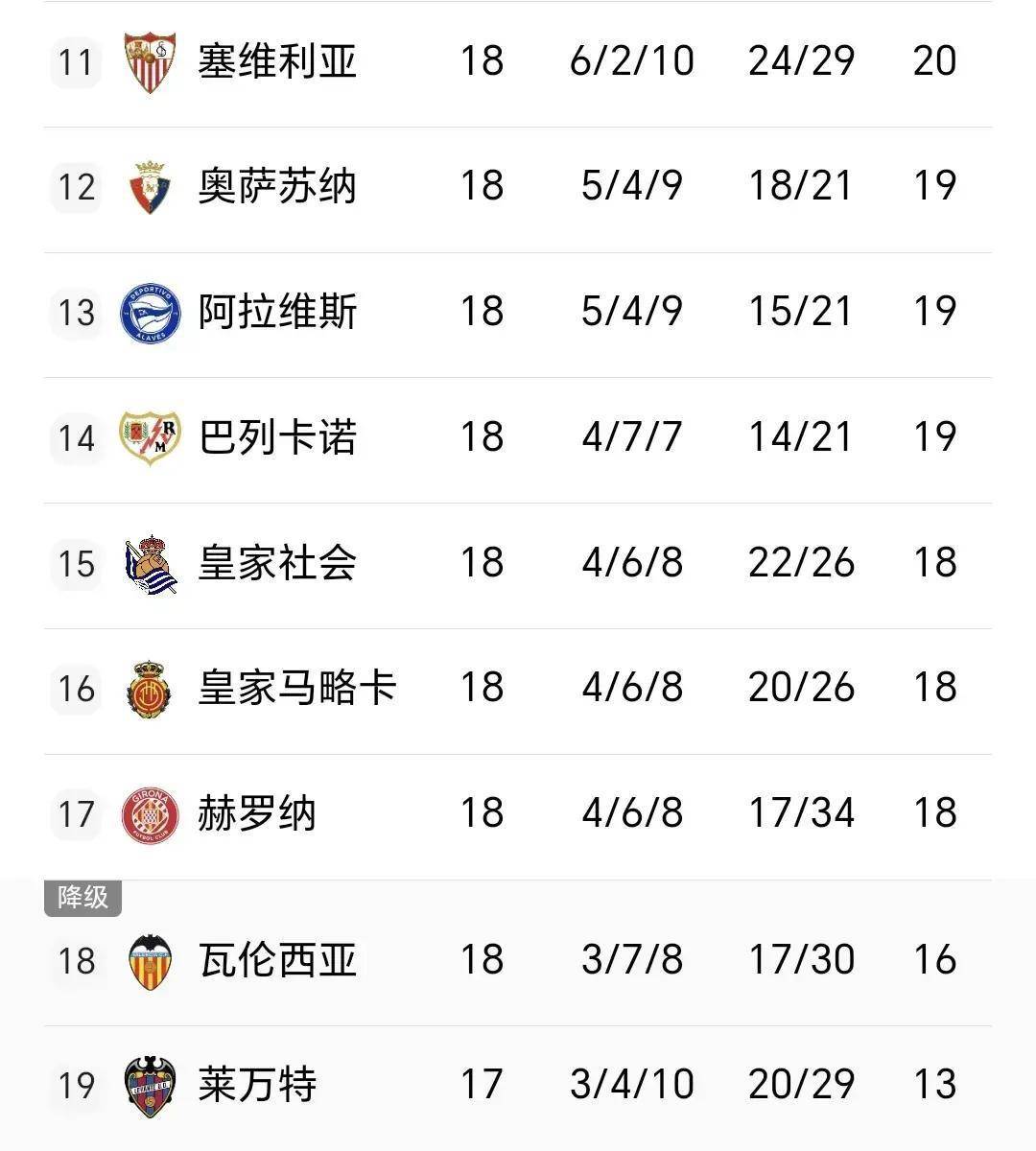 阿拉维斯对皇家奥维耶多的比分停在1-1,马略卡在与吉罗纳的对决中以0-2落败。积分榜上的形势也变得微妙,皇马继续位居前列,塞维利亚的排名跌得让人心慌,莱万特虽然还在末位,但这场大胜对球队士气的提升是实打实的。