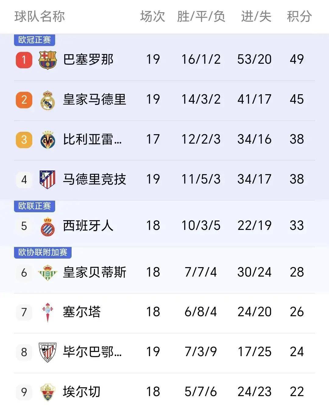 西甲联赛免费高清直播+实时赛程积分榜+竞彩预测全覆盖(2025赛季)随着皇马5-1战胜贝蒂斯马竞1-1战平皇社塞维利亚0-3告负西甲积分榜出炉