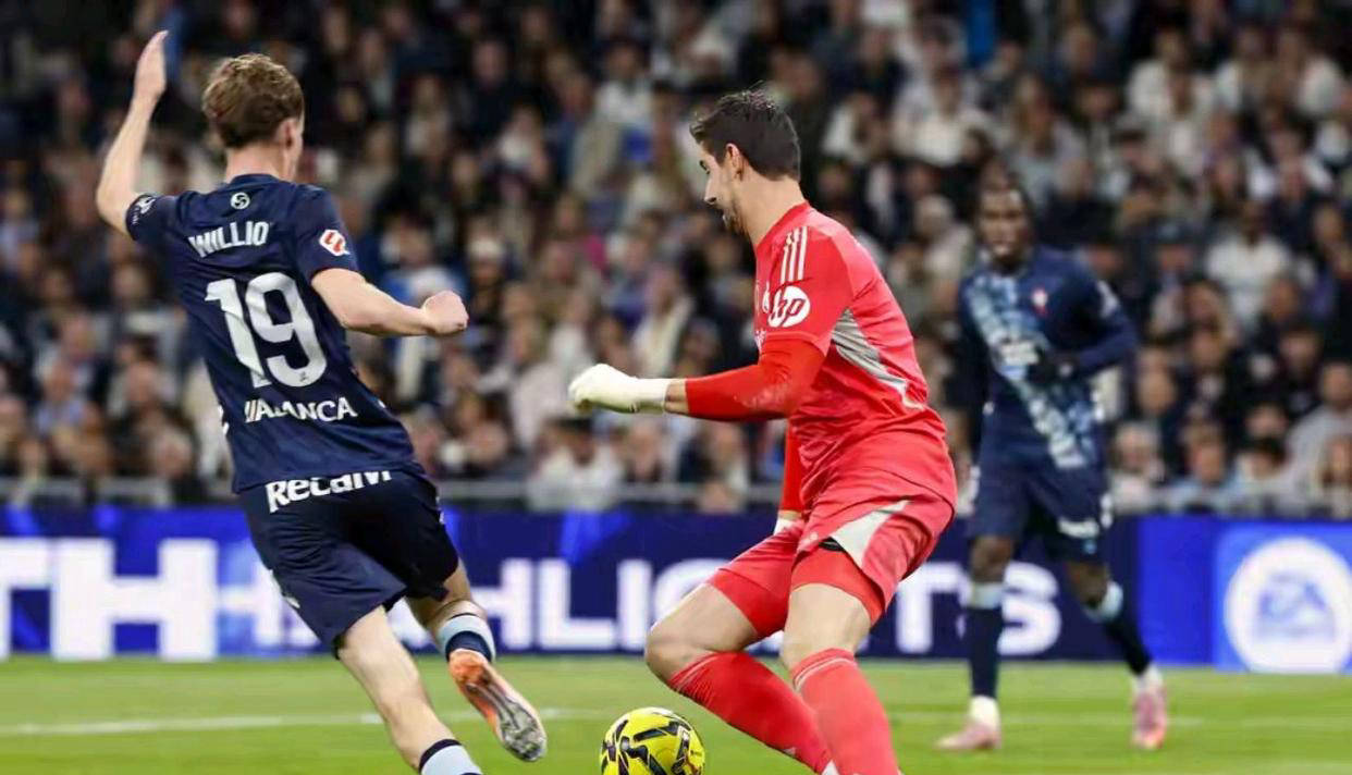 整场比赛开局较为谨慎,双方在半场内展开细致的战术试探,攻势并不猛烈,未能制造太多得分机会。直到第53分钟,塞尔塔的斯韦德贝里展现出极佳的射门精准度,一脚劲射直入皇马网底,客队取得1比0领先。此球犹如打开潘多拉盒子,引发皇马队员心理波动,场上形势开始急剧转变。