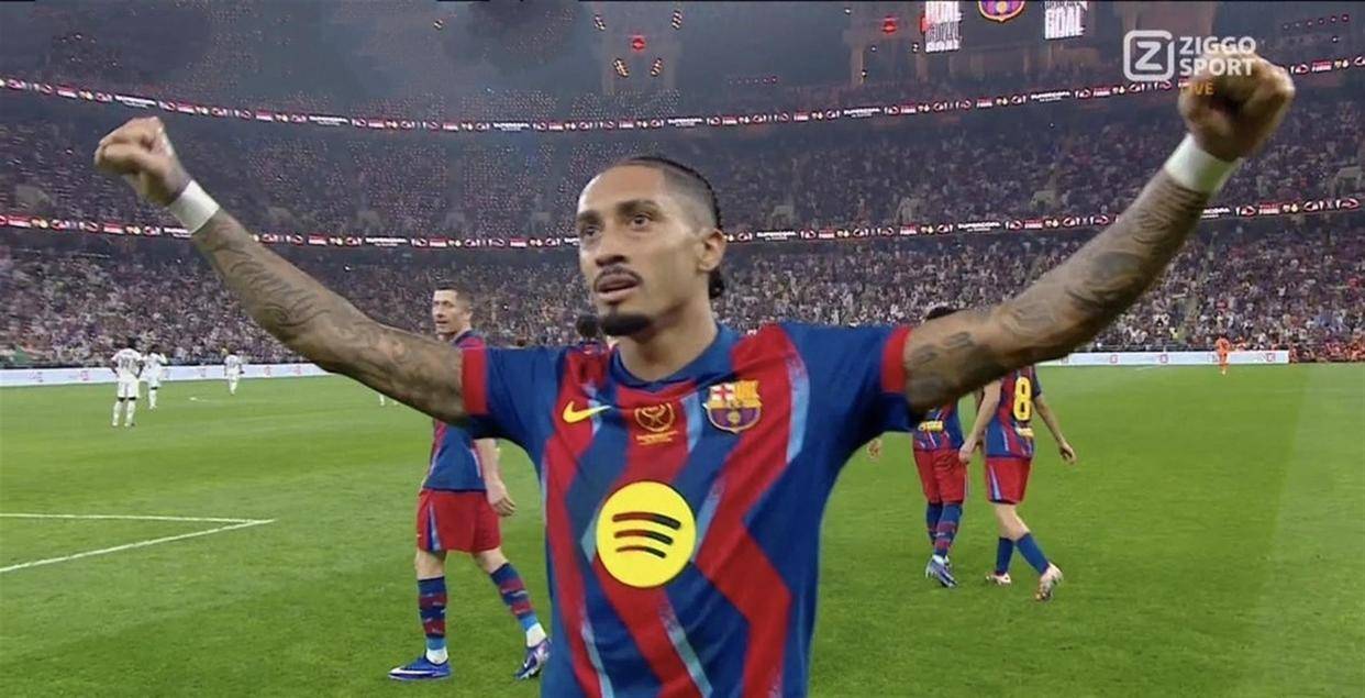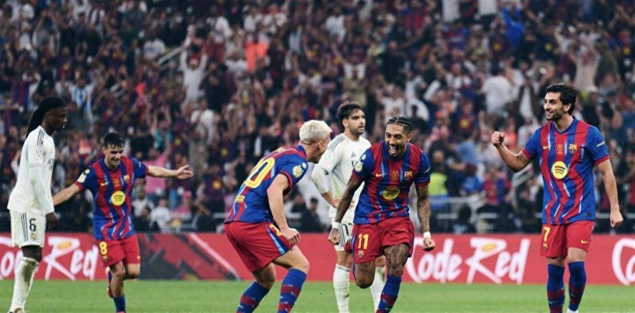先说说在沙特吉达上演的西班牙国家德比。 巴萨和皇马这俩老冤家,为了新年第一个冠军奖杯西超杯,那是真刀真枪干上了。 比赛一开始,皇马其实机会更好,维尼修斯和贡萨洛·加西亚都获得了单刀,可惜射门太正,都被巴萨门将霍安·加西亚给扑了。 逃过一劫的巴萨,在第36分钟抓住了机会。 小将亚马尔送出一脚漂亮的长传,拉菲尼亚心领神会前插,带球推进后一脚冷静的推射,皮球直窜远角,巴萨1比0领先。